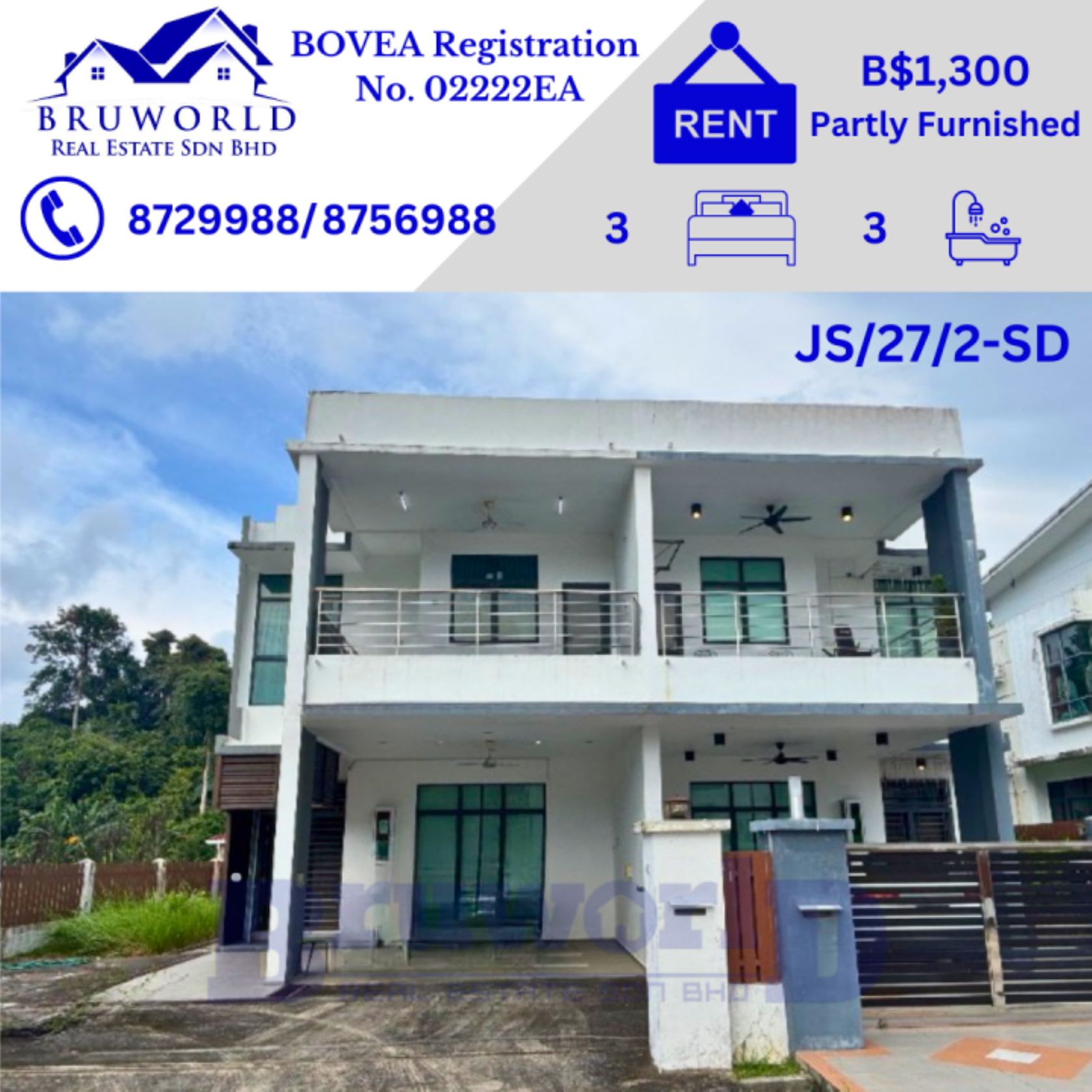 Description:JS/27/2-SD Monthly Rental:- B$1,300/= Partly Furnished 3 Bedrooms & 3 Bathrooms Updated by Yana 10.04.2026
